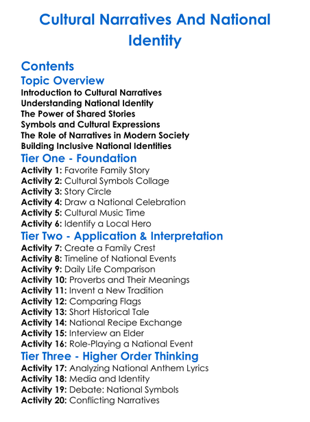 Cultural Narratives And National Identity Worksheet Activity Booklet