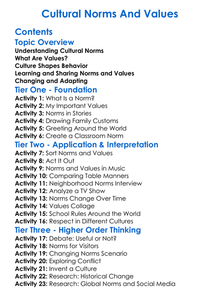 Cultural Norms And Values Worksheet Activity Booklet