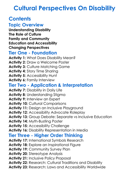 Cultural Perspectives On Disability Worksheet Activity Booklet