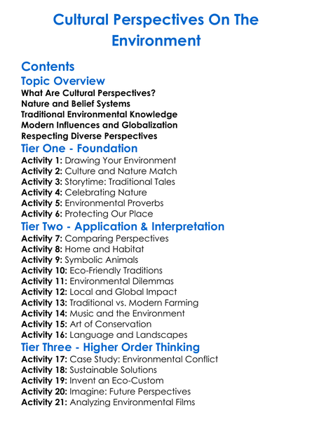 Cultural Perspectives On The Environment Worksheet Activity Booklet