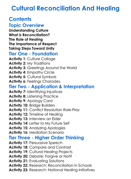 Cultural Reconciliation And Healing Worksheet Activity Booklet