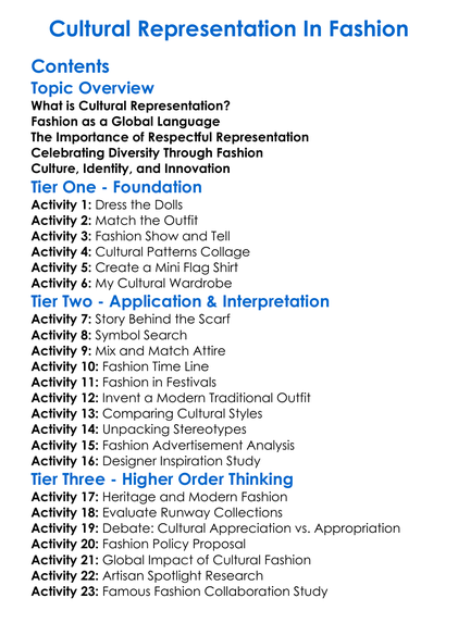 Cultural Representation In Fashion Worksheet Activity Booklet