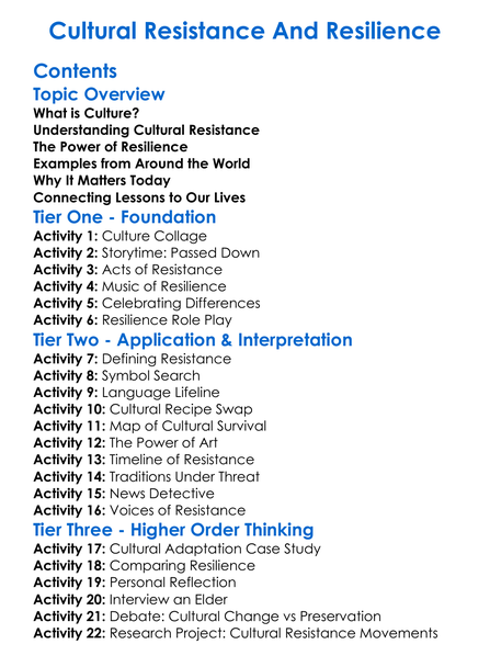 Cultural Resistance And Resilience Worksheet Activity Booklet