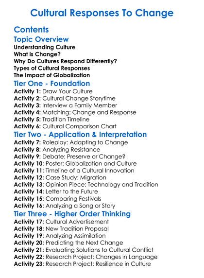 Cultural Responses To Change Worksheet Activity Booklet