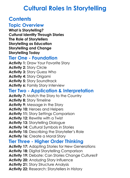 Cultural Roles In Storytelling Worksheet Activity Booklet