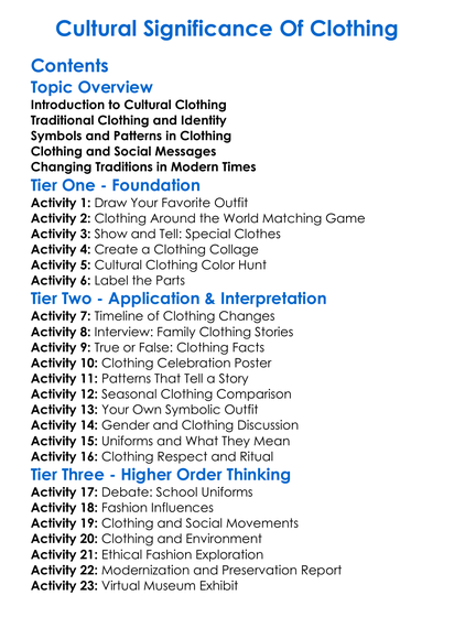 Cultural Significance Of Clothing Worksheet Activity Booklet