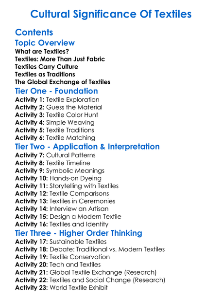 Cultural Significance Of Textiles Worksheet Activity Booklet