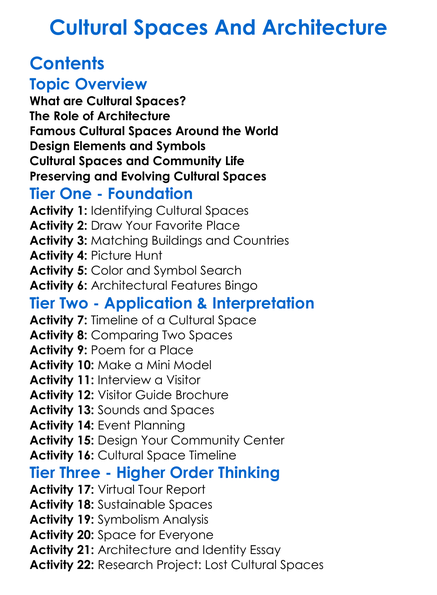 Cultural Spaces And Architecture Worksheet Activity Booklet