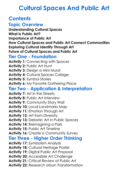 Cultural Spaces And Public Art Worksheet Activity Booklet