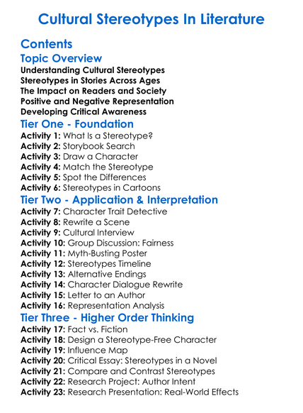 Cultural Stereotypes In Literature Worksheet Activity Booklet
