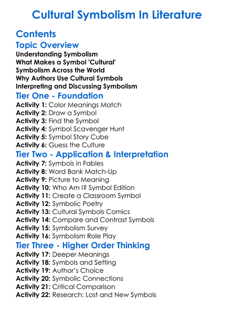 Cultural Symbolism In Literature Worksheet Activity Booklet