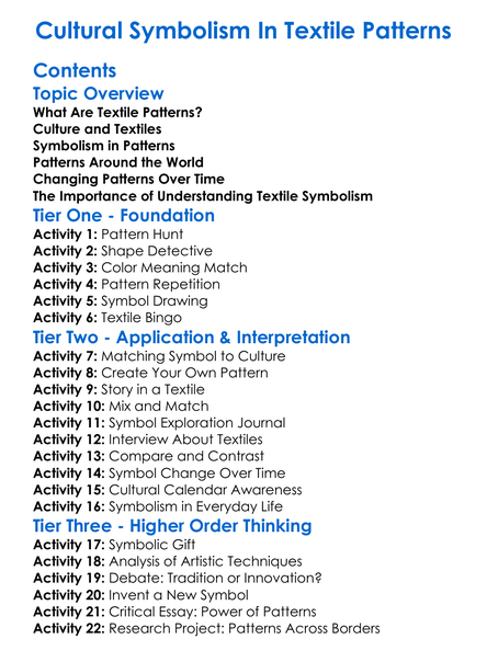 Cultural Symbolism In Textile Patterns Worksheet Activity Booklet