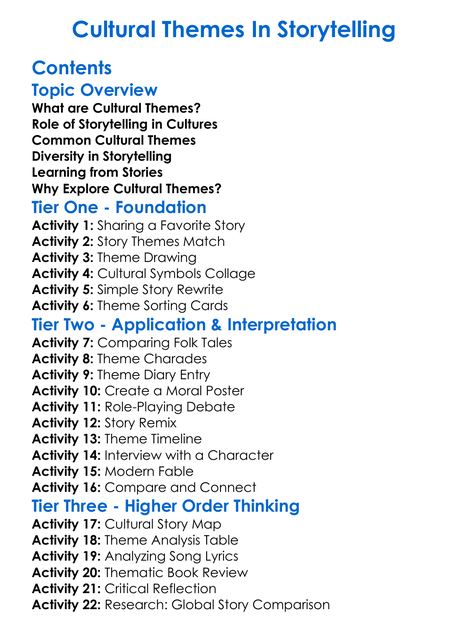 Cultural Themes In Storytelling Worksheet Activity Booklet