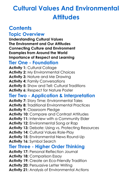 Cultural Values And Environmental Attitudes Worksheet Activity Booklet