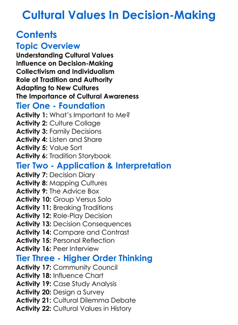 Cultural Values In Decision-Making Worksheet Activity Booklet