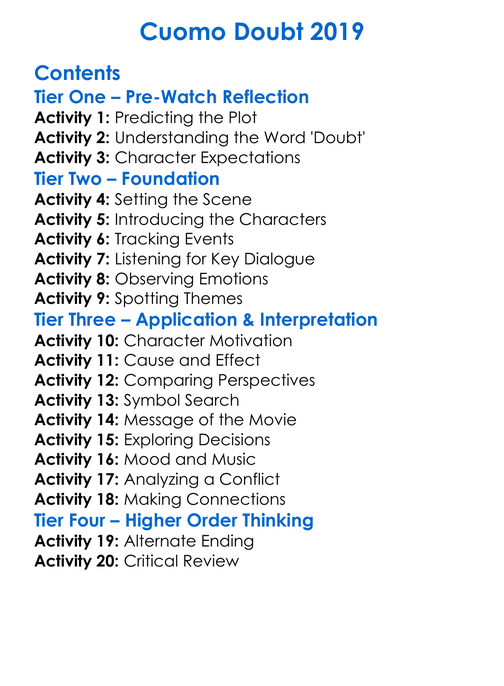 Cuomo Doubt 2019 Worksheet Activity Booklet