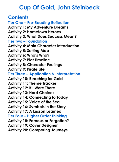 Cup Of Gold John Steinbeck Worksheet Activity Booklet