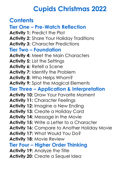 Cupids Christmas 2022 Worksheet Activity Booklet