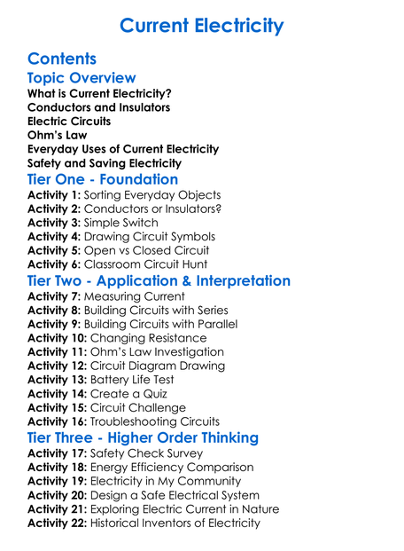 Current Electricity Worksheet Activity Booklet