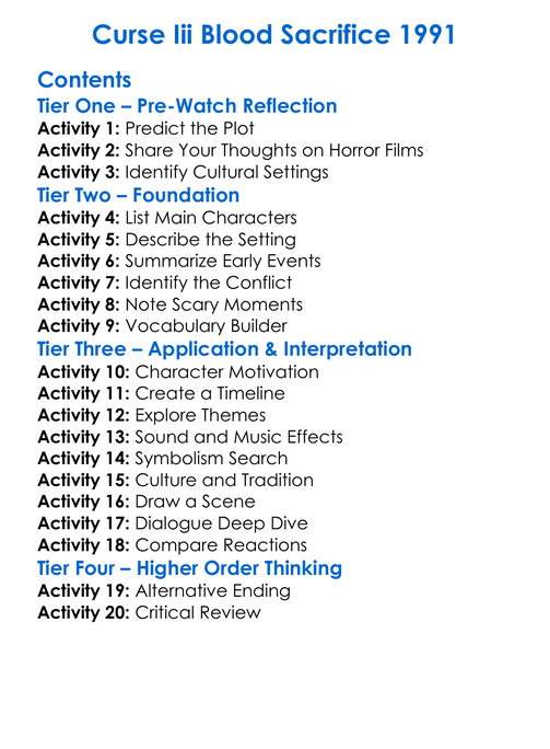 Curse Iii Blood Sacrifice 1991 Worksheet Activity Booklet