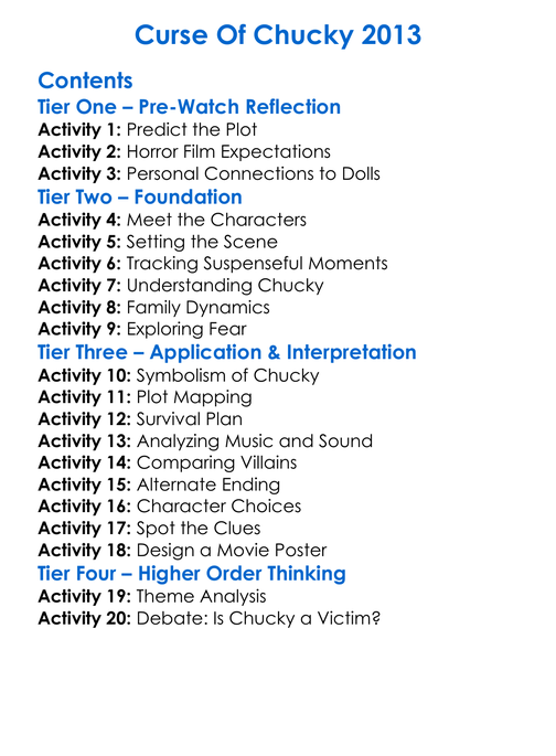 Curse Of Chucky 2013 Worksheet Activity Booklet