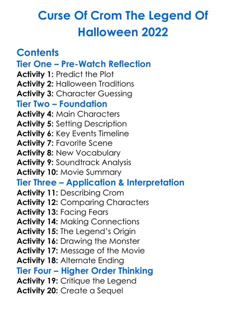 Curse Of Crom The Legend Of Halloween 2022 Worksheet Activity Booklet