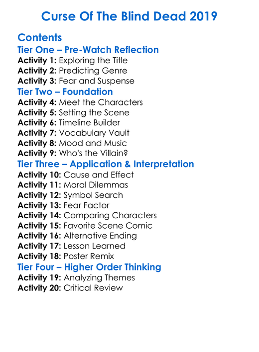Curse Of The Blind Dead 2019 Worksheet Activity Booklet