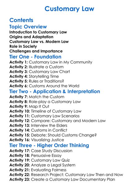 Customary Law Worksheet Activity Booklet