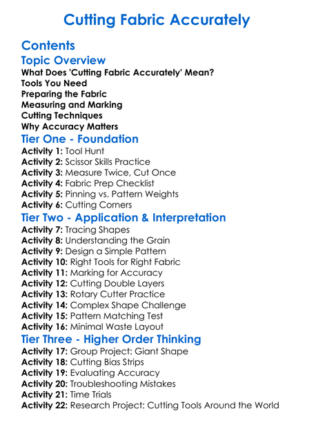Cutting Fabric Accurately Worksheet Activity Booklet