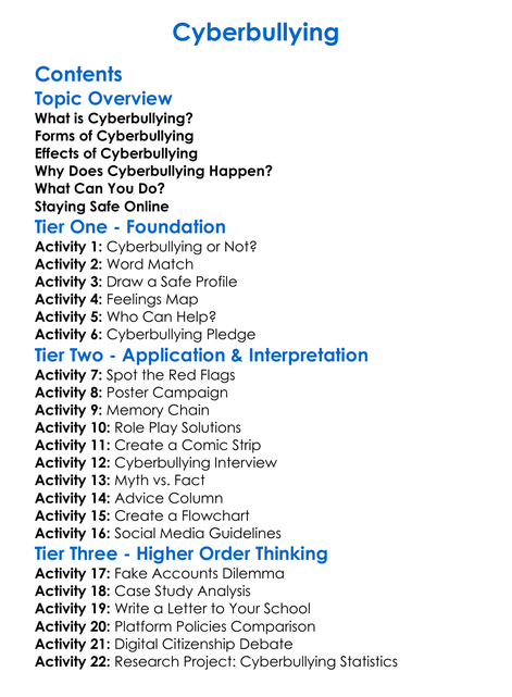 Cyberbullying Worksheet Activity Booklet