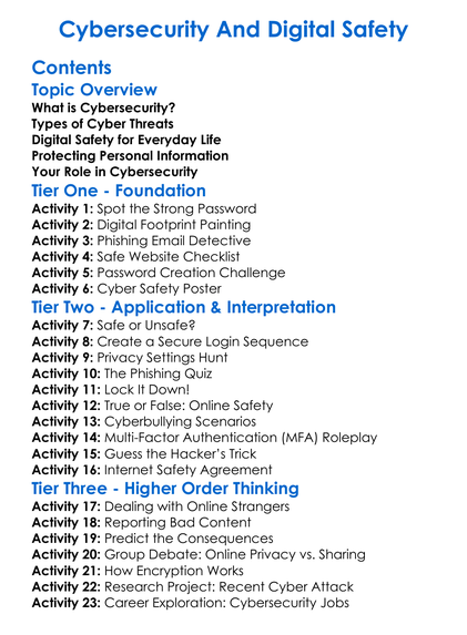Cybersecurity And Digital Safety Worksheet Activity Booklet