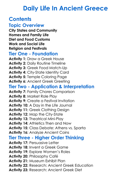 Daily Life In Ancient Greece Worksheet Activity Booklet