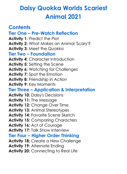Daisy Quokka Worlds Scariest Animal 2021 Worksheet Activity Booklet
