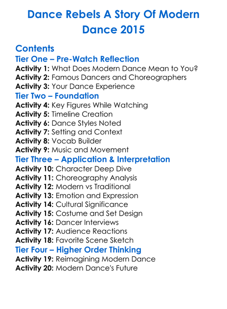 Dance Rebels A Story Of Modern Dance 2015 Worksheet Activity Booklet