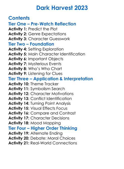 Dark Harvest 2023 Worksheet Activity Booklet