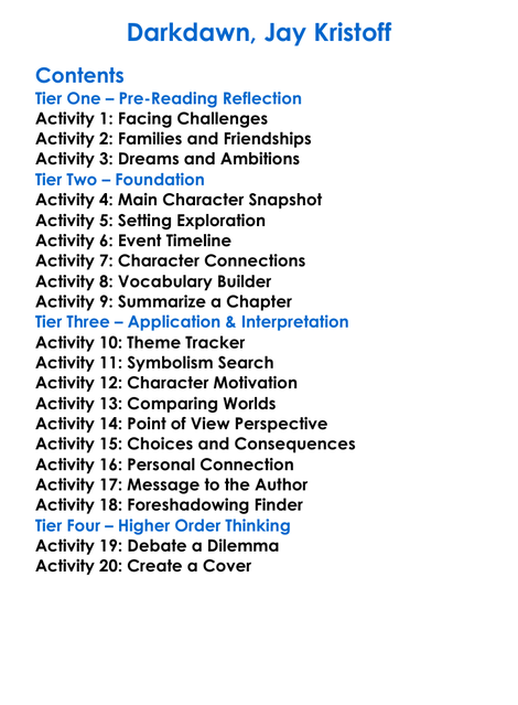 Darkdawn Jay Kristoff Worksheet Activity Booklet