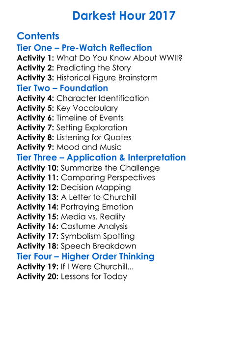 Darkest Hour 2017 Worksheet Activity Booklet