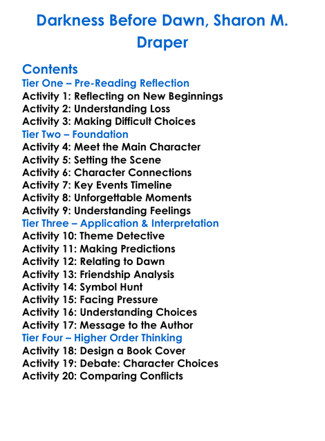 Darkness Before Dawn Sharon M Draper Worksheet Activity Booklet