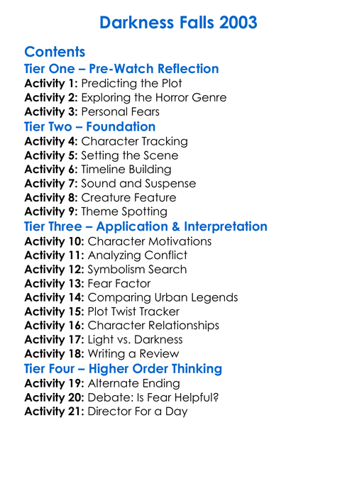 Darkness Falls 2003 Worksheet Activity Booklet