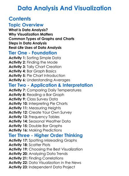 Data Analysis And Visualization Worksheet Activity Booklet