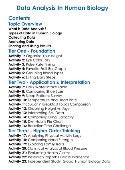 Data Analysis In Human Biology Worksheet Activity Booklet