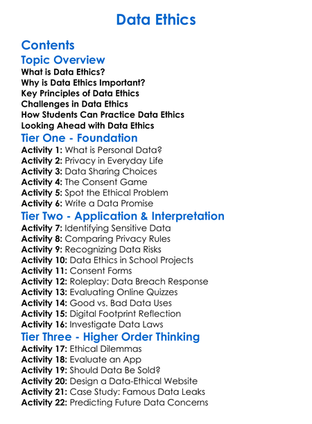 Data Ethics Worksheet Activity Booklet