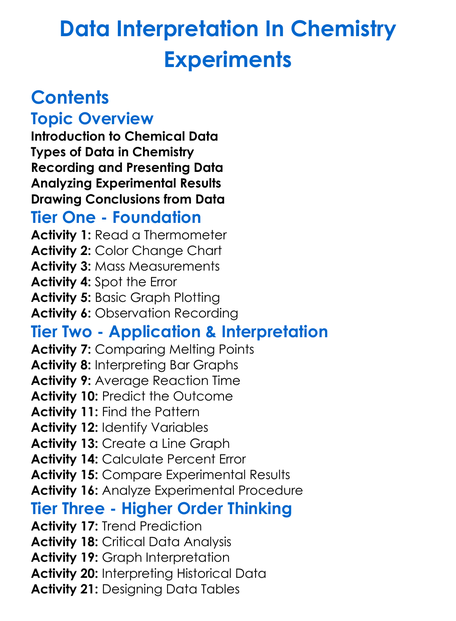 Data Interpretation In Chemistry Experiments Worksheet Activity Booklet