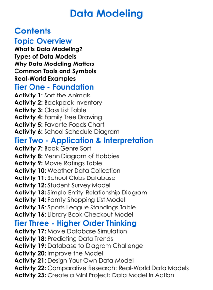 Data Modeling Worksheet Activity Booklet