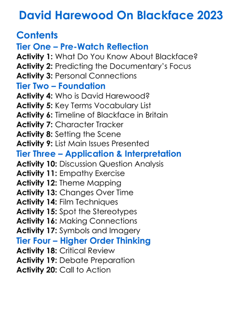 David Harewood On Blackface 2023 Worksheet Activity Booklet