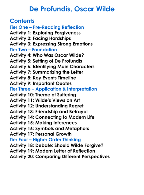 De Profundis Oscar Wilde Worksheet Activity Booklet
