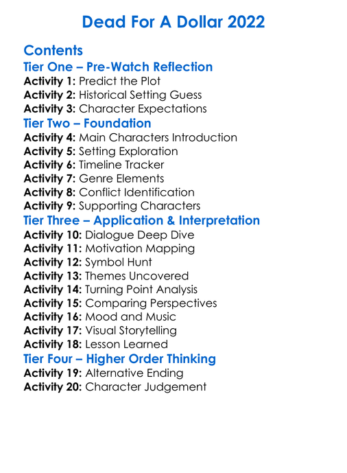 Dead For A Dollar 2022 Worksheet Activity Booklet