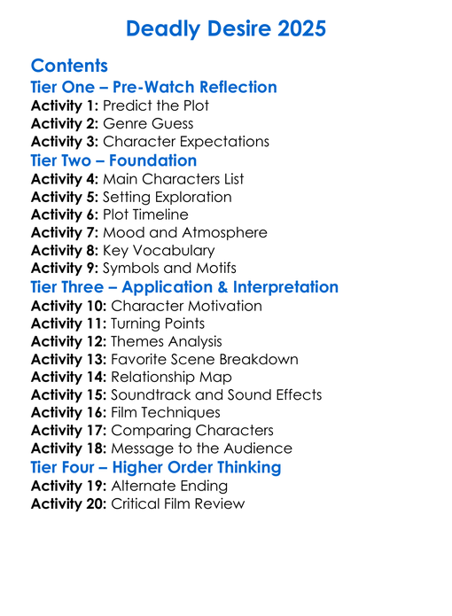Deadly Desire 2025 Worksheet Activity Booklet