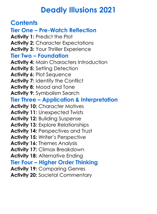 Deadly Illusions 2021 Worksheet Activity Booklet