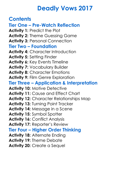 Deadly Vows 2017 Worksheet Activity Booklet
